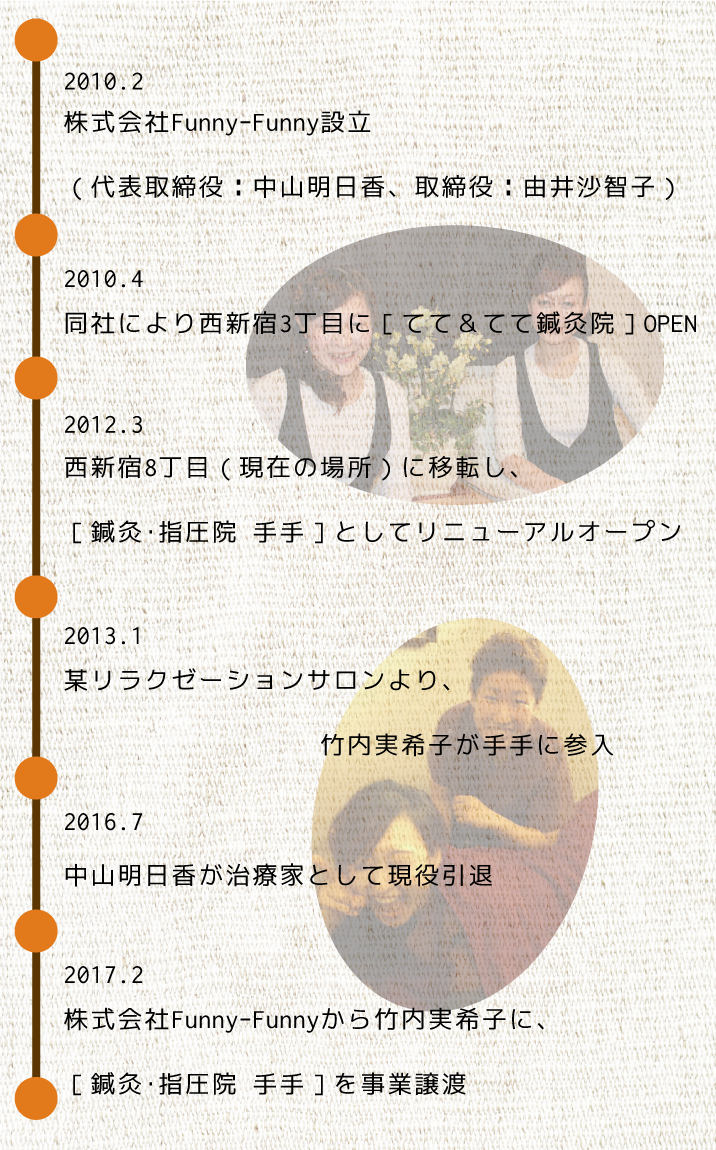 株式会社Funny-Funnyから竹内実希子に、[鍼灸・指圧院 手手]を事業譲渡